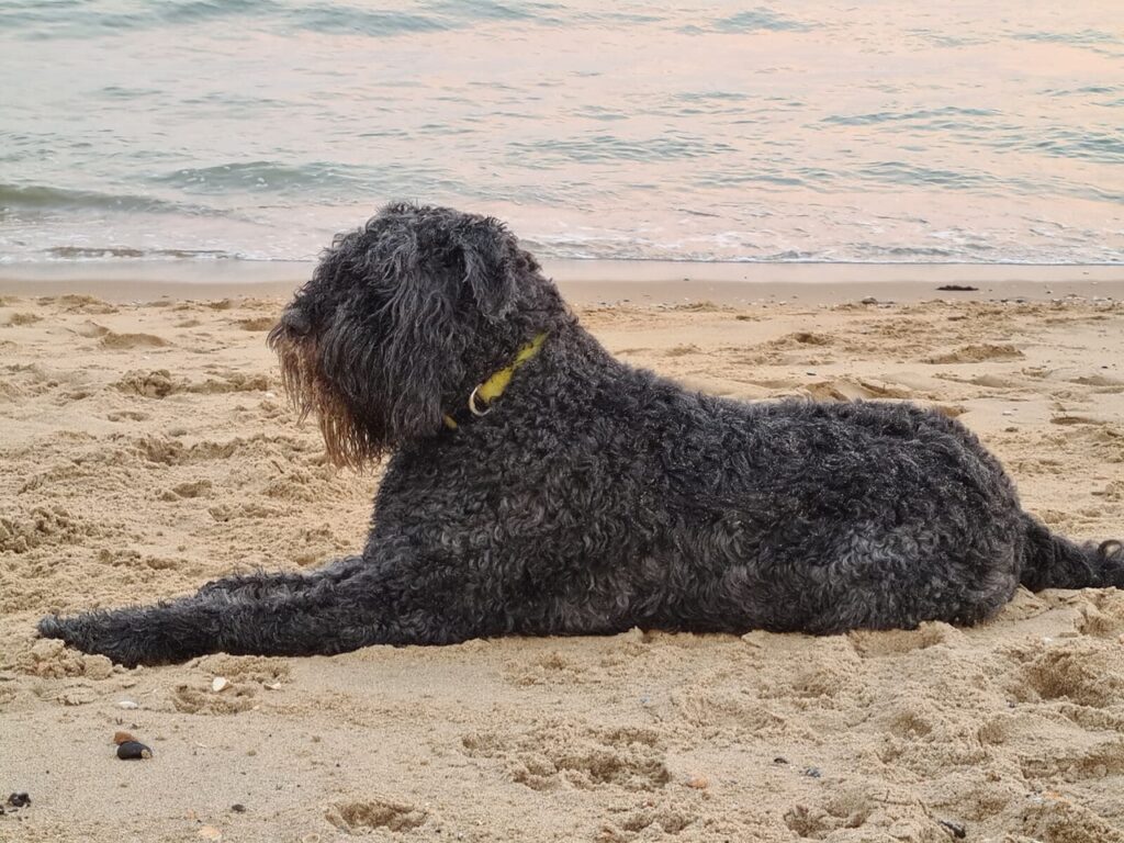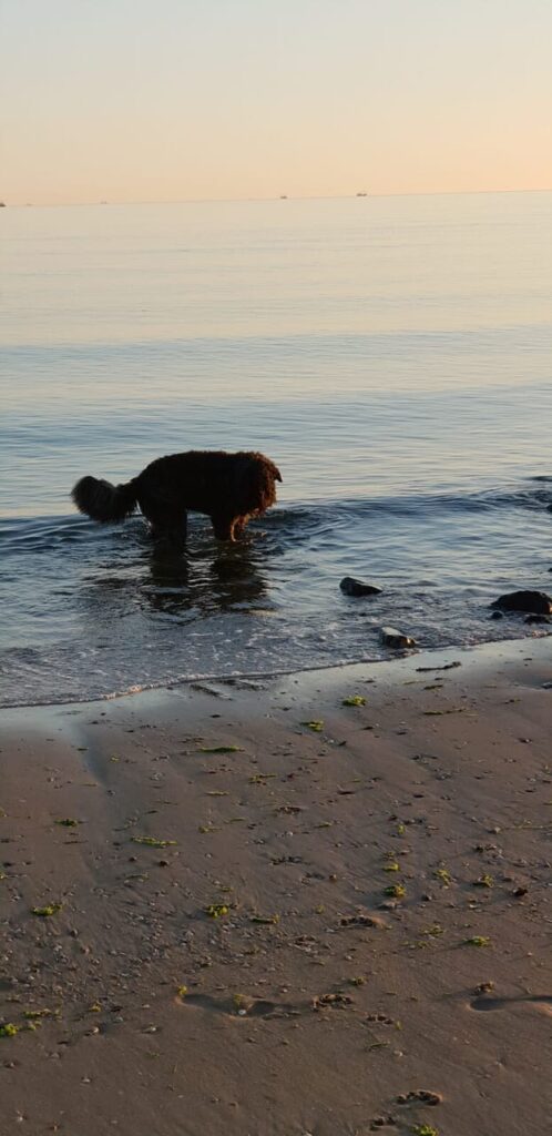 „Was für eine furchtbare Fahrt. Basco hat wohl gedacht, er wird wieder weg gebracht. Er wurde bei seinem vorherigen Besitzer von Hundepension zu Hundepension gebracht. Es hat ganze zwei Tage bedauert, bis Basco verstanden hat, dass wir mit ihm in Urlaub sind und er hat angefangen den Strand und das Wasser zu mögen. Die Heimfahrt war dann auch ganz entspannt. Seit dem hat er jedes Mal, wenn es in Urlaub ging, das Auto bewacht um nicht vergessen zu werden. Er hat es geliebt ins Wasser zu gehen und sich danach im Sand zu wälzen„.