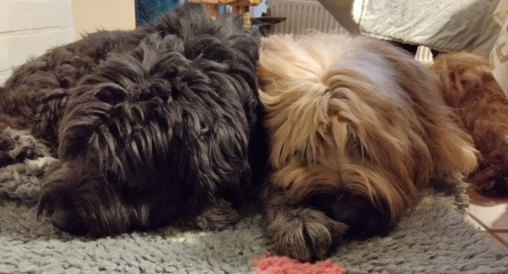 Gestern ist Luzie, die jetzt ja Linya heißt, in ihr neues Zuhause umgezogen; hier mit Rudelgefährten Smirre, einem 2-jährigen Briard-Rüden.